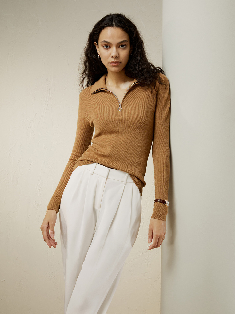 이 메리노 울 소재는 촉감이 부드럽고 통기성이 좋습니다. 컬러도 심플하고 세련되어 어떤 의상에나 잘 어울립니다. 청바지나 스커트에 코디하셔도 적합합니다. 저는 이번 구매에 매우 만족합니다.