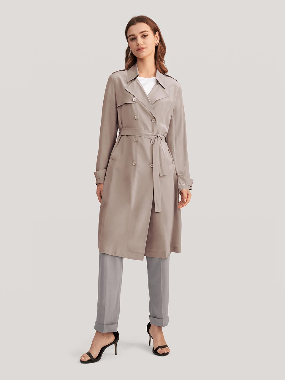 탈부착 가능한 실크 벨트가 있으며 타이트하게 묶어 허리라인을 돋보이게 할 수 있고 벨트를 착용하지않고 루즈하게 입을 수 있습니다.