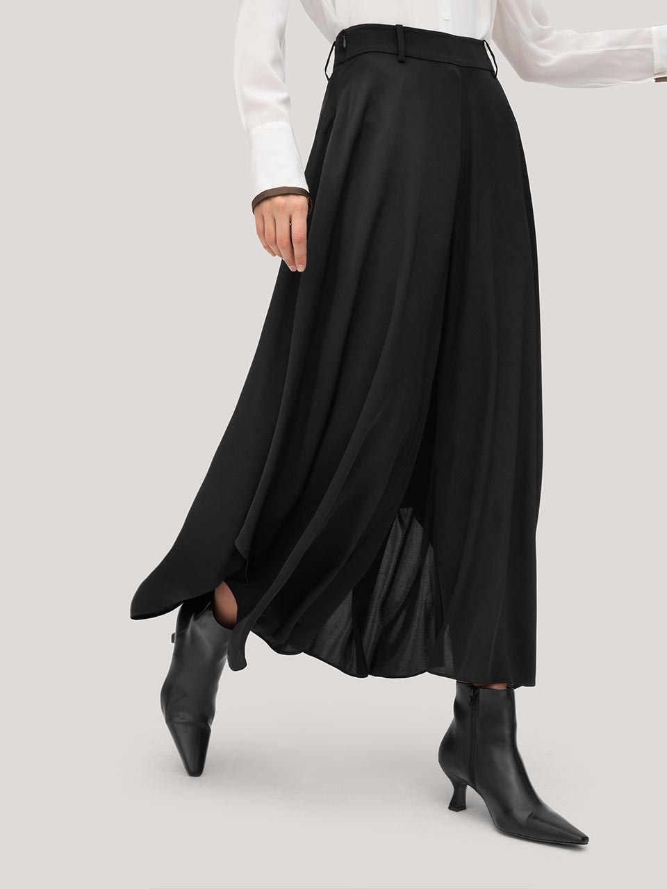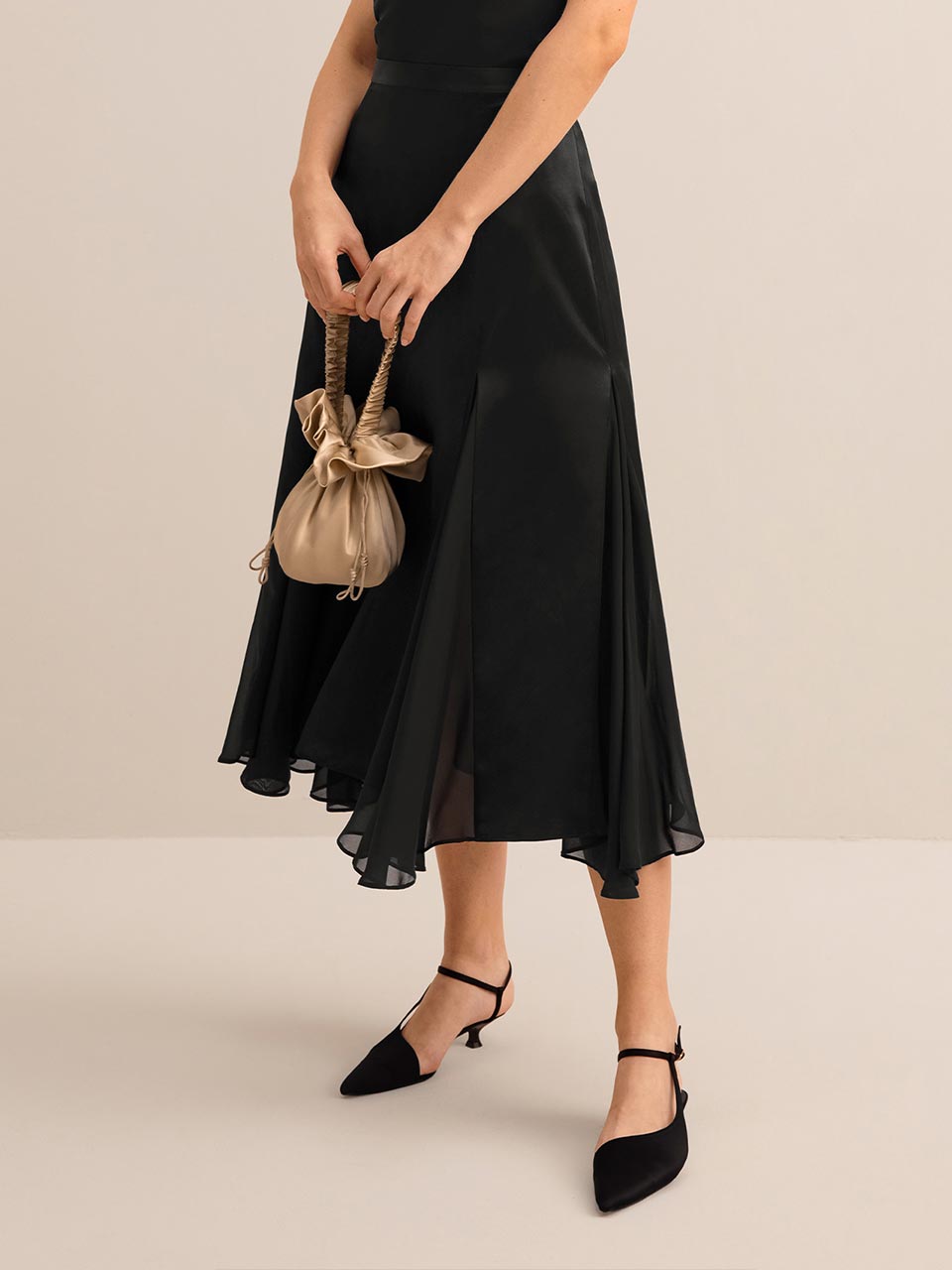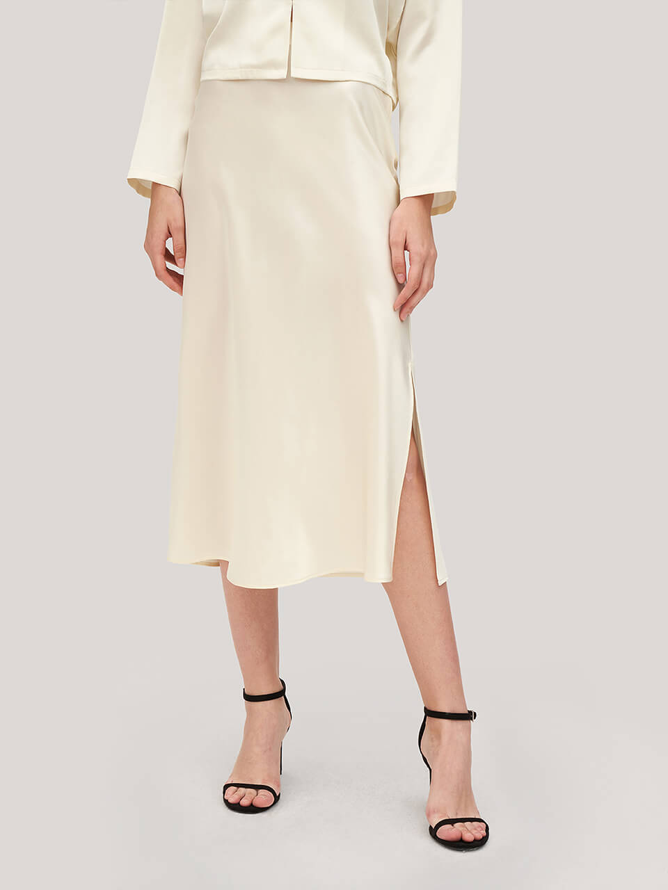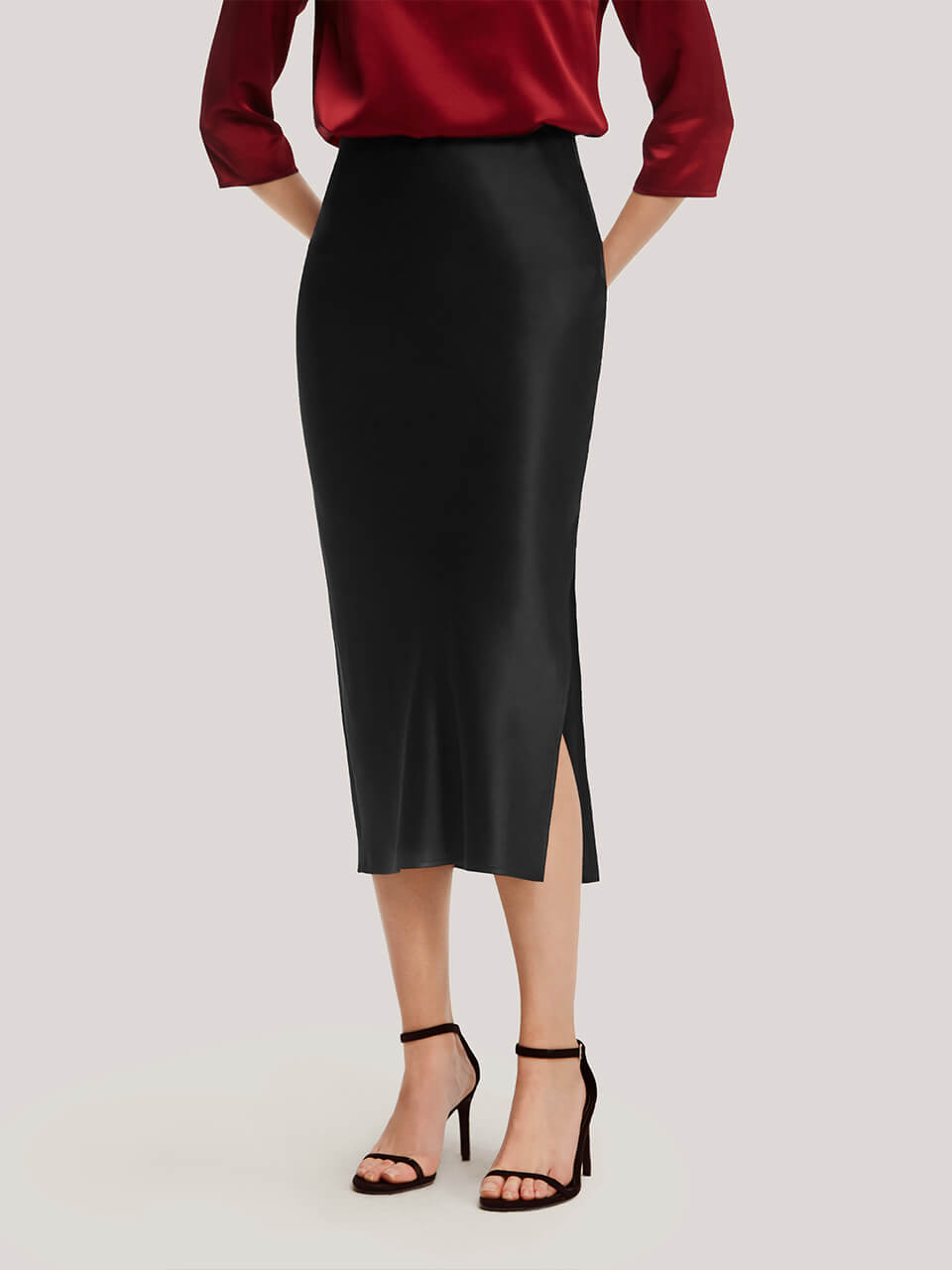 이 핀스트라이프 실크 미디 스커트는 다리를 날씬해 보이게 할 수